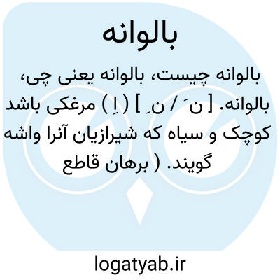 بالوانه. [ ن َ / ن ِ ] ( اِ ) مرغکی باشد کوچک و سیاه که شیرازیان آنرا واشه گویند. ( برهان قاطع ) ( آنندراج ). مرغی است شبیه به گنجشک و سیاه و سفید باشد. در صحاح الفرس بجای بالوانه با «نون » بالوایه با «یا» نوشته شده است. ( از فرهنگ شعوری ج 1 ص 192 ). مرغکی است همچند گنجشک و سپید و سیاه، کوتاه پای، بر درخت و دیوار نشیند، چون بر زمین نشیند بدشواری پرد. و آنرا پرستو و فراسنگ وفرستو نیز خوانند و به تازیش خطاف خوانند. پالوانه نیز گفته اند. ( از شرفنامه منیری ). او را به عربی ابابیل گویند. مرغی کوچک و سیاه که مردم شیراز واشه گویند. ( ناظم الاطباء ). اما ظاهراً در معنی این لغت بین واشه با پرستو خلط شده است. رجوع به بالوایه شود.