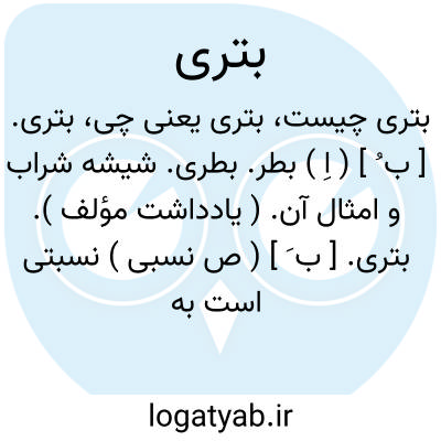 بتری. [ ب ُ ] ( اِ ) بطر. بطری. شیشه شراب و امثال آن. ( یادداشت مؤلف ).