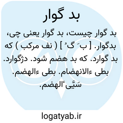 و آن راز سطوت توشرابیست بدگوار.مسعودسعد.شراب خرمایی... غلیظ و بدگوار است و راه جگر ببندد. ( نوروزنامه ). تخم کتان بدگوار است و معده را زیان دارد. ( ذخیره خوارزمشاهی ).