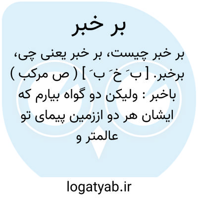برخبر. [ ب َ خ َ ب َ ] ( ص مرکب ) باخبر: ولیکن دو گواه بیارم که ایشان هر دو اززمین پیمای تو عالمتر و برخبرتر. ( تاریخ قم ص 106 ).