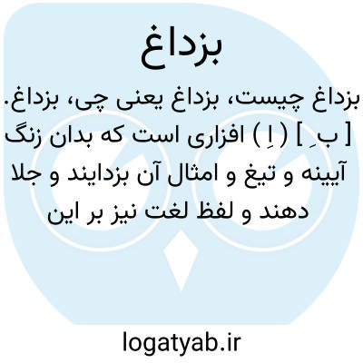 بزداغ. [ ب ِ ] ( اِ ) افزاری است که بدان زنگ آیینه و تیغ و امثال آن بزدایند و جلا دهند و لفظ لغت نیز بر این معنی دلالت میکند، و آنرا بعربی مصقلة خوانند. و بزدائیدن بهمین معنی مصدر این لغت است و بزداغیدن تبدیل غین به الف است و بزدودن نیز مثل همانست. ( آنندراج ) ( انجمن آرای ناصری ) ( برهان ) ( شعوری ) ( شرفنامه منیری ) ( مجمعالفرس ). مصقل. بُزداغ. پزداغ. ( برهان ) ( ناظم الاطباء ) ( مجمعالفرس ):