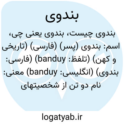 اسم: بندوی (پسر) (فارسی) (تاریخی و کهن) (تلفظ: banduy) (فارسی: بندوی) (انگلیسی: banduy)