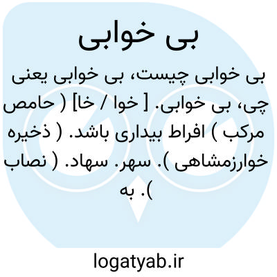 بی خوابی. [ خوا / خا] ( حامص مرکب ) افراط بیداری باشد. ( ذخیره خوارزمشاهی ). سهر. سهاد. ( نصاب ). به خواب نرفتن: