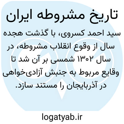 [ویکی فقه] تاریخ مشروطه ایران، از منابع مستند تاریخ مشروطیت (خصوصاً در تبریز)، تألیف سید احمد کسروی می باشد.
