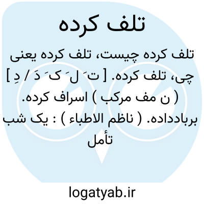 تلف کرده. [ ت َ ل َ ک َ دَ / دِ ] ( ن مف مرکب ) اسراف کرده. بربادداده. ( ناظم الاطباء ): یک شب تأمل ایام گذشته می کردم و بر عمر تلف کرده تأسف می خوردم. ( گلستان ).