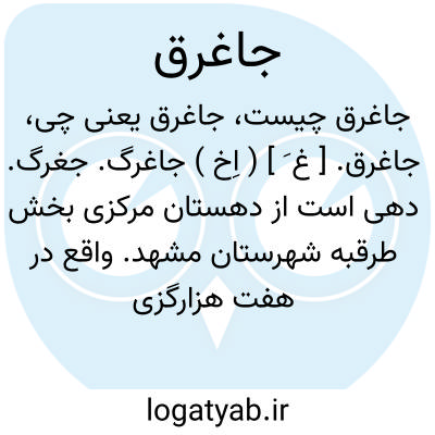 جاغرق. [ غ َ ] ( اِخ ) جاغرگ. جغرگ. دهی است از دهستان مرکزی بخش طرقبه شهرستان مشهد. واقع در هفت هزارگزی جنوب باختری طرقبه و سر راه مالرو عمومی نیشابور. موقع آن کوهستانی و هوای آن معتدل و دارای 1628 تن سکنه است. آب آنجا از رودخانه و محصول آن غلات، میوه و خشکبار است. شغل اهالی زراعت، کرباس بافی، قالیچه بافی و راه آن مالرو است. ( از فرهنگ جغرافیایی ایران ج 9 ). صاحب مرآت البلدان آرد: جاغرق از بلوک ییلاقی مشهد و دهات این بلوک گلستان، حصار، ترقبه، عنبران است و دهکده ای دیگر نیز موسوم به اسم این بلوک [جاغرق ] است که مسافت آن تا شهر سه فرسخ است. این قریه عمارات عالی دارد و آبش ناگوار و غلیظ است ولی درختهای میوه دار بخصوص گیلاس ممتاز دارد. ( مرآت البلدان ج 4 ص 72 ).