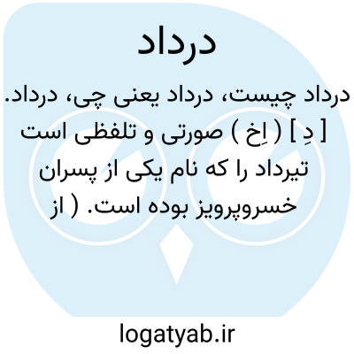 درداد. [ دِ ] ( اِخ ) صورتی و تلفظی است تیرداد را که نام یکی از پسران خسروپرویز بوده است. ( از تاریخ ایران باستان ج 3 ص 2594 ).
