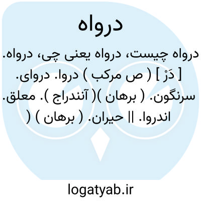درواه. [ دَرْ ] ( ص مرکب ) دروا. دروای. سرنگون. ( برهان )( آنندراج ). معلق. اندروا. || حیران. ( برهان ) ( آنندراج ). سرگردان. متحیر. سرگشته: