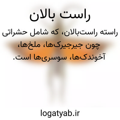راست بالان. ( اِ مرکب ) ج ِ راستبال و آن بر دسته حشراتی که بال راست و مستقیم دارند اطلاق میشود مانند ملخ. ( ازجانورشناسی عمومی ج 1 ص 160 ). رجوع به راست بال شود.