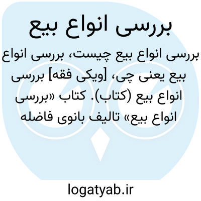 [ویکی فقه] بررسی انواع بیع (کتاب). کتاب «بررسی انواع بیع» تالیف بانوی فاضله مرحومه نرجس عباباف ها، همسر محمد سامت و عروس آیت الله سامت قزوینی (رحمه الله) است. این بانوی نویسنده و پژوهشگر در زمانی که دسترسی به اینترنت فراگیر نبوده با رجوع به تک تک منابع فقهی و حقوقی این مطلب را جمع آوری کرده است.