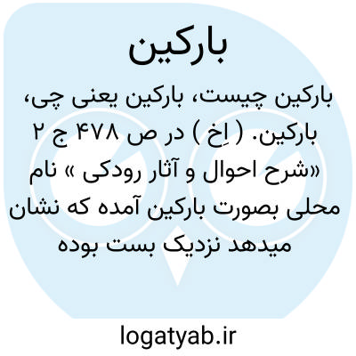 بارکین. ( اِخ ) در ص 478 ج 2 «شرح احوال و آثار رودکی » نام محلی بصورت بارکین آمده که نشان میدهد نزدیک بست بوده است. مؤلف قریب نیم صفحه از تاریخ سیستان نقل کرده است و این کلمه در دو جا به همان صورت تکرار شده در صورتی که در متن تاریخ سیستان ص 309 در هر دو جا بصورت پارگین است. و مؤلف این قسمت را از نسخه خطی متعلق به مرحوم بهار نقل کرده و چون در نسخه خطی «پ » را با یک نقطه می نوشتند کلمه را «بارکین » نقل کرده اند. رجوع به تاریخ سیستان ص 309 و احوال و اشعار رودکی ج 2 ص 478 و آنندراج و بارگین شود.
