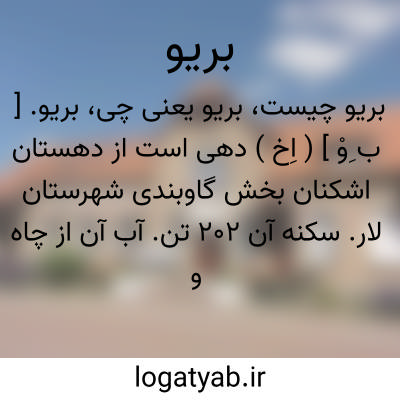 بریو. [ ب ِوْ ] ( اِخ ) دهی است از دهستان اشکنان بخش گاوبندی شهرستان لار. سکنه آن 202 تن. آب آن از چاه و باران ومحصول آن غلات است. ( از فرهنگجغرافیایی ایران ج 7 ).