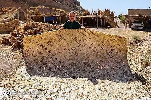 اندازه های حصیرها در حدود ۴ در ۸ متر است. آنها را لوله کرده و به کسانی که ساختمان می سازند، می فروشند. مرکز معروف این صنعت زرقان نزدیک شیراز است و نی ها را از باتلاق های اطراف رودخانه پلوار به دست آورده می شود.