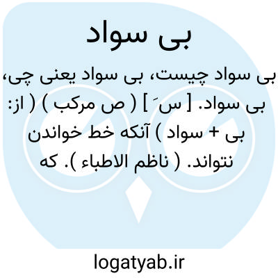 بی سواد. [ س َ ] ( ص مرکب ) ( از: بی + سواد ) آنکه خط خواندن نتواند. ( ناظم الاطباء ). که خواندن و نوشتن نداند. ( یادداشت مؤلف ). ناخوانا. نانویسا. ناخوانده. امی. عامی: بی سواد کور است. || که معلومات بسیار و عمیقی ندارد: آدمی بیسواد. ( یادداشت مؤلف ). کم مایه در دانش.