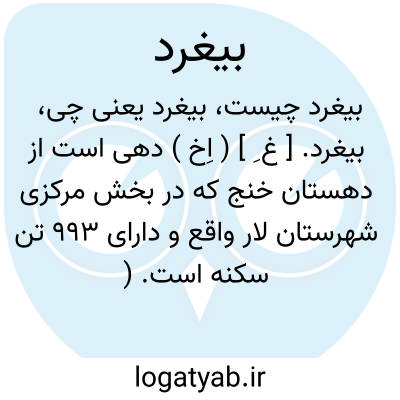 بیغرد. [ غ ِ ] ( اِخ ) دهی است از دهستان خنج که در بخش مرکزی شهرستان لار واقع و دارای 993 تن سکنه است. ( از فرهنگ جغرافیایی ایران ج 7 ).