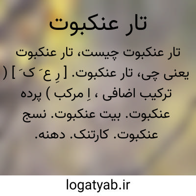 تار عنکبوت. [ رِ ع َ ک َ ] ( ترکیب اضافی، اِ مرکب ) پرده عنکبوت. بیت عنکبوت. نسج عنکبوت. کارتنک. دهنه. تنیده عنکبوت. دام عنکبوت. تنسته. کره. کرتینه. ابرکاکیا. ابرکاکیاب. ابرکاکیان. کناغ. رجوع به «تار» و «ابرکاکیا» شود.
