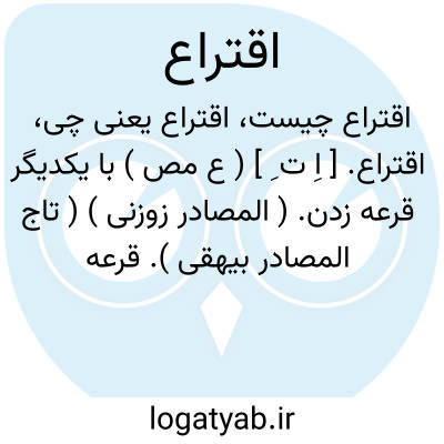 اقتراع. [ اِ ت ِ ] ( ع مص ) با یکدیگر قرعه زدن. ( المصادر زوزنی ) ( تاج المصادر بیهقی ). قرعه زدن. ( منتهی الارب ) ( آنندراج ) ( ناظم الاطباء ). پشک انداختن. استهام. || برگزیدن. ( المصادر زوزنی ) ( آنندراج ) ( ناظم الاطباء ) ( منتهی الارب ) ( تاج المصادر ). || آتش افروختن. ( منتهی الارب ) ( آنندراج ) ( ناظم الاطباء ).