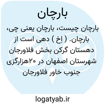 💡 بارچان یک روستا در ایران است که در استان اصفهان و در ۱۲کیلومتری شهر مبارکه و ۳۵ کیلومتری شهر اصفهان واقع شده‌است. بارچان ۷۵۰ تن جمعیت دارد.