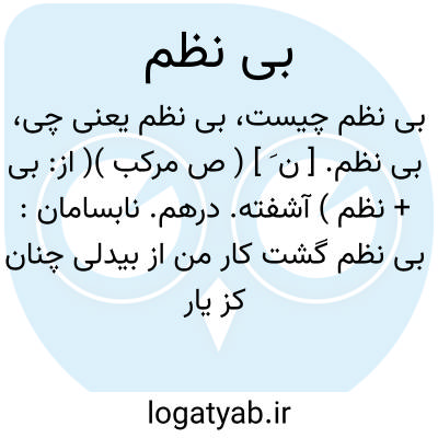 بی نظم. [ ن َ ] ( ص مرکب )( از: بی + نظم ) آشفته. درهم. نابسامان: