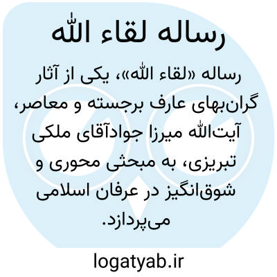 [ویکی نور] رساله لقاء الله، از آثار ارزنده عارف بزرگ معاصر، آیت الله میرزا جوادآقا ملکی تبریزی (درگذشته 1304ش) است که در آن یکی از مهم ترین و شورانگیزترین مباحث عرفانی؛ یعنی لقاء الله و دیدار با حضرت حقّ را مورد بحث و بررسی قرار داده است. انتخاب اسم «لقاء اللّه» برای این کتاب از آیت الله میرزا خلیل کمره ای است که از شاگردان برجسته مؤلف بوده است وگرنه خود مؤلف نامی بر آن ننهاده بود و در بعضی منابع و شرح حال ها از این کتاب با عنوان «سیر و سلوک» نام برده اند.