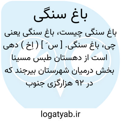 باغ سنگی. [ س َ ] ( اِخ ) دهی است از دهستان طبس مسینا بخش درمیان شهرستان بیرجند که در 92 هزارگزی جنوب خاوری درمیان واقع است. ناحیه ای است کوهستانی و گرمسیر با 95 تن سکنه و آب آنجا از چشمه سار تأمین میشود. محصول عمده آن غلات و شلغم و شغل مردمش زراعت و مالداری و راهش مالرو است. ( از فرهنگ جغرافیایی ایران ج 9 ).