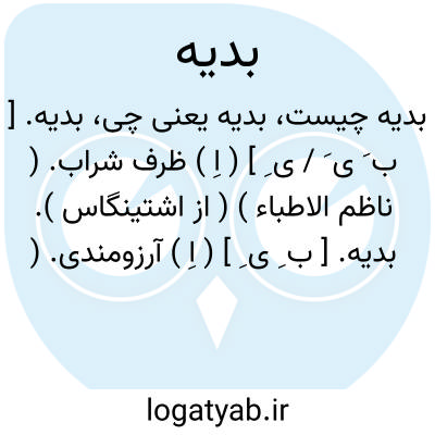 بدیه. [ ب ِ ی ِ ] ( اِ ) آرزومندی. ( برهان ) ( ناظم الاطباء ) ( فرهنگ اوبهی ) ( فرهنگ رشیدی ). در برهان بمعنی آرزومندی آورده و غلط است بویه را بدیه خوانده و او را دال پنداشته. ( انجمن آرا ص 81 ). ظاهراً مصحف بویه است. ( از حاشیه برهان چ معین ). رجوع به بویه شود.