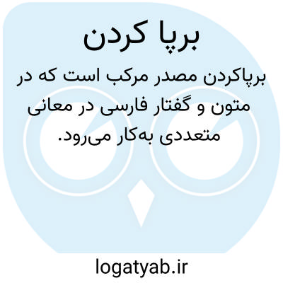 برپاکَردن مصدر مرکب است که در متون و گفتار فارسی در معانی متعددی بهکار میرود. در کاربرد نخست، به معنای تشکیل دادن، برپا داشتن یا انعقاد مجلسی اعم از جشن یا عزاداری است؛ مانند برپاکردن مراسمی رسمی یا آیینی. در معنایی دیگر، این واژه به مفهوم تأسیس کردن، پیافکندن یا بنیاد نهادن چیزی بهکار میرود؛ چنانکه در متون کهن آمده است: بهشت را از برای تو برپا کردهام که اشاره به بنیانگذاری و آفرینش دارد. همچنین برپاکردن در معنای نصب کردن، برافراشتن یا استوار ساختن چیزی نیز کاربرد دارد؛ مانند برپاکردن پرچم یا بنایی که برپا میشود و استوار میماند.