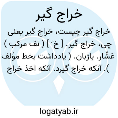 خراج گیر. [ خ َ ] ( نف مرکب ) عَشّار. باژبان. ( یادداشت بخط مؤلف ). آنکه خراج گیرد. آنکه اخذ خراج کند.