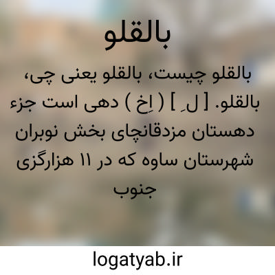 بالقلو. [ ل ِ ] ( اِخ ) دهی است جزء دهستان مزدقانچای بخش نوبران شهرستان ساوه که در 11 هزارگزی جنوب خاوری مرکز بخش و 3 هزارگزی راه عمومی در کوهستان واقع است و 388تن سکنه دارد. آب آنجا از چشمه سار تأمین میشود. محصول عمده آن غلات و بن شن و انگور و گردو و سیب زمینی و شغل مردمش زراعت و گله داری و قالیچه و جاجیم بافی و راهش مالرو است. ( از فرهنگ جغرافیایی ایران ج 1 ).