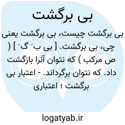 بی برگشت. [ بی ب َ گ َ ] ( ص مرکب ) که نتوان آنرا بازگشت داد. که نتوان برگرداند.