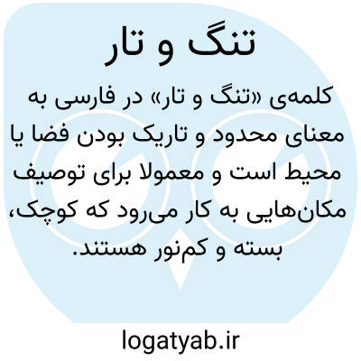 کلمه‌ی «تنگ و تار» در فارسی به معنای محدود و تاریک بودن فضا یا محیط است و معمولاً برای توصیف مکان‌هایی به کار می‌رود که کوچک، بسته و کم‌نور هستند. این واژه در ادبیات کهن و اشعار فارسی کاربرد فراوان دارد و تصویری از محیطی دشوار، بسته یا گرفته ارائه می‌کند که عبور و حرکت در آن دشوار است. «تنگ» نشان‌دهنده محدودیت فضا و سختی حرکت است و «تار» بیانگر کم‌نوری، ظلمت یا تاریکی محیط است. در ترکیب «تنگ و تار» اغلب شاعر یا نویسنده قصد دارد علاوه بر ویژگی‌های فیزیکی مکان، احساس فشار، سختی و دلگیری محیط را نیز منتقل کند. این عبارت می‌تواند به صورت استعاری نیز به کار رود و محدودیت‌ها و تنگناهای زندگی، شرایط سخت یا وضعیت ناگوار را نشان دهد. «تنگ و تار» با مفاهیمی مانند کوچک و تاریک، محدود و ظلمانی، بسته و تار و محیط سخت و دشوار هم‌معنی است و بار ادبی و تصویری قوی دارد. به طور کلی، این عبارت بیانگر محیط یا وضعیتی است که محدود، تاریک و دشوار است و در متون ادبی برای انتقال احساس فشار، ناامیدی یا سختی شرایط استفاده می‌شود.