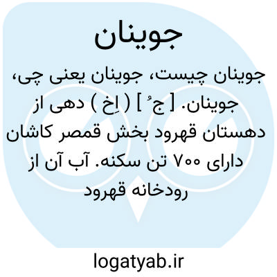 جوینان. [ ج ُ ] ( اِخ ) دهی از دهستان قهرود بخش قمصر کاشان دارای 700 تن سکنه. آب آن از رودخانه قهرود و 4 رشته قنات و محصول آن میوه جات، غلات، سیب زمینی، گُل. شغل اهالی زراعت و گله داری، مکاری گری و صنایع دستی زنان قالی و چادرشب بافی است. راه مالرو دارد. بنای معصوم زاده بنام شاهزاده حسین قدیمی در این ده قرار دارد. مزارع اوبار، اشکنه، دربید جزء این ده است. ( از فرهنگ جغرافیائی ایران ج 3 ).