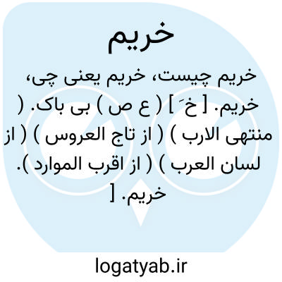خریم. [ خ ُ رَ ] ( اِخ ) نام آبی است در نزدیکی قادسیه. ( از معجم البلدان یاقوت ).