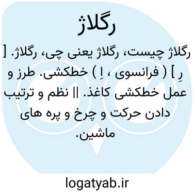 رگلاژ. [ رِ ] ( فرانسوی، اِ ) خطکشی. طرز و عمل خطکشی کاغذ. || نظم و ترتیب دادن حرکت و چرخ و پره های ماشین.