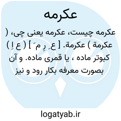 ( عکرمة ) عکرمة. [ ع ِ رِ م َ ] ( ع اِ ) کبوتر ماده، یا قمری ماده. و آن بصورت معرفه بکار رود و نیز با «ال » می آید. ( از منتهی الارب ) ( از اقرب الموارد ). کبوتر ماده. ج، عَکارم. ( دهار ).