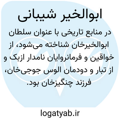 فرمانروای ازبکان و بنیانگذار (حک: ۸۳۴ ـ ۸۷۳ق) سلسلۀ شیبانیان. پسر دولت شیخ اوغلان از نسل شیبان و از نوادگان چنگیزخان بود. در هفده سالگی به خانی رسید و تا ۸۳۴ ق بیشتر طوایف ازبک را زیر فرمان خود درآورد. در همان سال به خوارزم تاخت و اورگنج ـ تختگاه خوارزم ـ را گشود. در ۸۵۰ ق با تسخیر کرانه های سیردریا، دست تیموریان را از آن نواحی کوتاه کرد و سقناق را به پایتختی خود برگزید. پس از مرگ شاهرخ میرزا و عزیمت الغ بیگ برای تسخیر هرات در ۸۵۱ ق، ابوالخیر به سمرقند تاخت و با وجود بعضی پیروزی ها، از عهدۀ گشودن آن برنیامد. در ۸۵۵ ق ابوسعید تیموری را در تسخیر سمرقند و به قتل آوردن عبدالله بن ابراهیم تیموری یاری رساند و به پاس این همکاری رابعه سلطان بیگم، دختر الغ بیگ، به همسری او درآمد. پس از آن، ازبک ها به دشت قبچاق بازگشتند. ابوالخیرخان از نفاق تفرقۀ شاهزادگان تیموری بهره برد و قلمرو حکومت خود را از توبولسک تا سیر دریا توسعه داد. پادشاهی ابوالخیرخان درپی منازعه با اویرات ها (مغولان شرقی) و قزاق ها و جدایی برخی قبایل از وی رو به سستی نهاد. ابوالخیرخان به روایتی در پیکار با قزاق ها کشته شد. مسعود بن عثمان کوهستانی در دورۀ عبداللطیف شیبانی، شرح زندگی ابوالخیرخان را در کتابی فارسی به نام تاریخ ابوالخیرخانی نوشت.