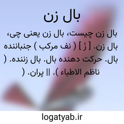 بال زن. [ زَ ] ( نف مرکب ) جنباننده بال. حرکت دهنده بال. بال زننده. ( ناظم الاطباء ). || پران. ( آنندراج ). پروازکننده. ( فرهنگ شعوری ج 1 ص 181 ). پرنده. ( آنندراج ) ( ناظم الاطباء ). || جنبنده. || ( اِ ) کار و بار. ( ناظم الاطباء ).
