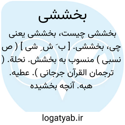 بخششی. [ ب َ ش ِ شی ] ( ص نسبی ) منسوب به بخشش. نحلة. ( ترجمان القرآن جرجانی ). عطیه. هبه. آنچه بخشیده می شود. || درخوربخشش. اهل بخشش. معتاد به بخشش. ( یادداشت مؤلف ).