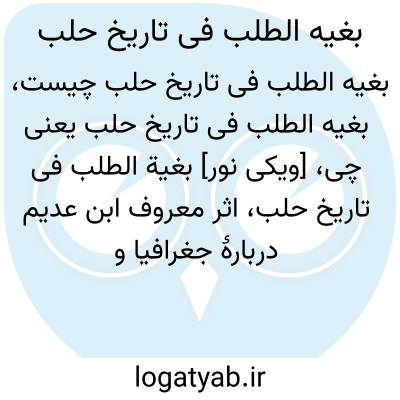 [ویکی نور] بغیة الطلب فی تاریخ حلب، اثر معروف ابن عدیم دربارۀ جغرافیا و تاریخ حلب که در آن روزگار و پس از آن با اقبال فراوان روبرو شد و نزدیک به همۀ مورخان معاصر وی و سده های بعدی از آن بهره بردند. بغیة الطلب کتاب جامع و دقیقی در جغرافیا و تاریخ حلب است که اطلاعات مهمی نیز دربارۀ شام، مصر و عراق دارد.این کتاب نمونۀ خوبی در شیوۀ جغرافیانویسی و تاریخ نگاری اسلامی است که با استناد به روایات شفاهی و مآخذی که تا زمان مؤلف در دسترس بوده، نوشته شده است. همچنین اطلاعات منحصر به فردی دربارۀ سرزمین های خلافت به دست می دهد که در کتاب های دیگر وجود ندارد و به واسطۀ این کتاب از تاراج مغول، حملۀ صلیبی ها و حوادث طبیعی مصون مانده است.