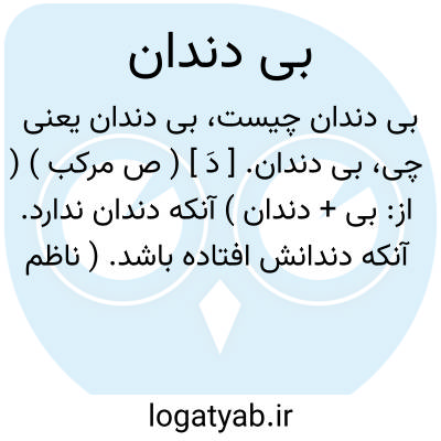 بی دندان. [ دَ ] ( ص مرکب ) ( از: بی + دندان ) آنکه دندان ندارد. آنکه دندانش افتاده باشد. ( ناظم الاطباء ). || پیر. سالخورده: پیر بی دندان؛ پیر هاف هافو.