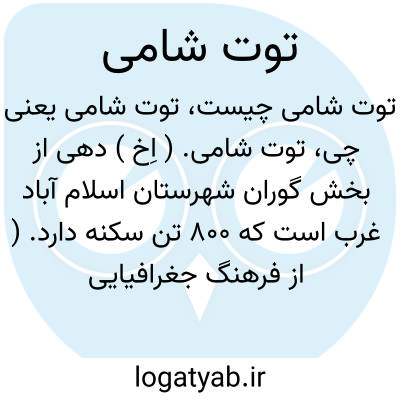 توت شامی. ( اِخ ) دهی از بخش گوران شهرستان اسلام آباد غرب است که 800 تن سکنه دارد. ( از فرهنگ جغرافیایی ایران ج 5 ).