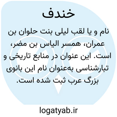 خندف. [ خ ِ دِ ] ( اِخ ) لقب لیلی بنت حلوان بن عمران زوجه الیاس. ( آنندراج ). طایفه ای از مضر عدنانیه به او منسوبند و آنها از اولاد الیاس بن مضر بودند. ( از اعلام زرکلی جزء 3 ص 823 ). این زن یکی از جدات رسول ( ص ) است. ( یادداشت بخط مؤلف ).