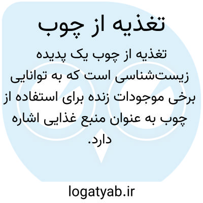 [ویکی فقه] تغذیه از چوب (قرآن). هر چند که در ظاهر به نظر نمی آید که چوب ارزش غذایی داشته باشد ولی در خلقت پر حکمت عالم موجوداتی از آن تغذیه می کنند.