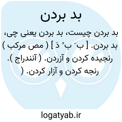 بد بردن. [ ب َ ب ُ دَ ] ( مص مرکب ) رنجیده کردن و آزردن. ( آنندراج ). رنجه کردن و آزار کردن. ( ناظم الاطباء ).