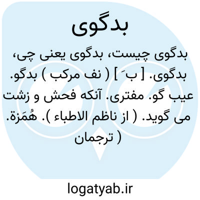 بدگوی. [ ب َ ] ( نف مرکب ) بدگو. عیب گو. مفتری. آنکه فحش و زشت می گوید. ( از ناظم الاطباء ). هُمَزة. ( ترجمان القرآن جرجانی ترتیب عادل بن علی ). لماز. هماز. نمام. ( یادداشت مؤلف ):
