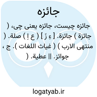 ( جائزة ) جائزة. [ ءِ زَ ] ( ع اِ ) صلة. ( منتهی الارب ) ( غیاث اللغات ). ج، جوائز. || عطیة. ( منتهی الارب ). عطا. ( دهار ). انعام. ( غیاث اللغات ). ج، جوائز. || ارمغان. تحفه. || لطف. احسان. || استادنگاه آبکش بر چاه. ( منتهی الارب ). || خطی مستقیم که برای علامت تصحیح مقررکرده اند. صورت الفی است که بر سر اعداد، بعد مقابله و تصحیح کشند. و آن علامت صحت باشد. ( غیاث اللغات ). || شربتی از آب. ( منتهی الارب ). || جوائز الاشعار و الامثال؛ ما جاز من بلد الی بلد.