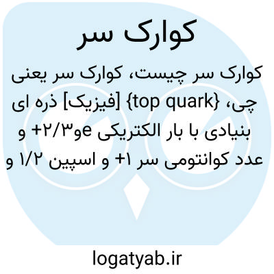 {top quark} [فیزیک] ذره ای بنیادی با بار الکتریکی eو2/3+ و عدد کوانتومی سر 1+ و اسپین 1/2 و عدد باریونی 1/3