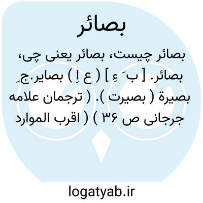 بصائر. [ ب َ ءِ ] ( ع اِ ) بصایر.ج ِ بصیرة ( بصیرت ). ( ترجمان علامه جرجانی ص 36 ) ( اقرب الموارد ) ( منتهی الارب ) ( آنندراج ). بیناییها و حجتهای روشن. ( غیاث ). بینایی ها و یقین ها و زیرکی ها و حجت ها. ( از آنندراج ). بیناییها و یقین ها. ( فرهنگ نظام ) ( منتهی الارب ): و ابصار بصائر ایشان را... روشن می گرداند. ( تاریخ بیهق ). بینایی بصائر بدین فتح مبین است. ( جهانگشای جوینی ). و رجوع به بصایر شود.