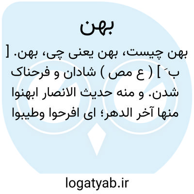 بهن. [ ب َ ] ( ع مص ) شادان و فرحناک شدن. و منه حدیث الانصار ابهنوا منها آخر الدهر؛ ای افرحوا وطیبوا نفساً بصحبتی. ( منتهی الارب ) ( ناظم الاطباء ).