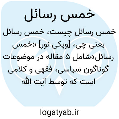 [ویکی نور] «خمس رسائل»شامل 5 مقاله در موضوعات گوناگون سیاسی، فقهی و کلامی است که توسط آیت الله عبد الله جوادی آملی به زبان عربی نوشته شده است.